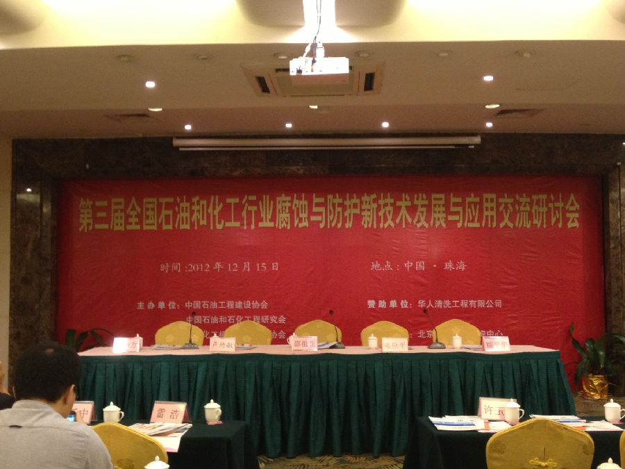 2012年12月15日,珠海城市阳光明媚,温暖惬意!由公司赞助的《第三届全国石油和化工行业腐蚀与防护新技术发展与应用研讨会》珠海在2000年大酒店如期举行。来自全国石油和化工行业的生产企业代表以及腐蚀与防护行业的专家和建设单位代表齐聚一堂,共同探讨《腐蚀与防护》课题,公司总经理唐奇先生在会上讲话并介绍了《高压水射流清洗防腐涂装新工艺》和《设备托管清洗服务》的服务概念。会议取得圆满成功,展示了公司形象和显示了公司的实力!